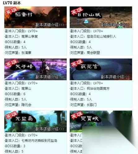 70级英雄本: 稻香村,日轮山城,荻花宫,天子峰,无盐岛,天工坊,三才阵,灵霄峡,空雾峰,战宝迦兰