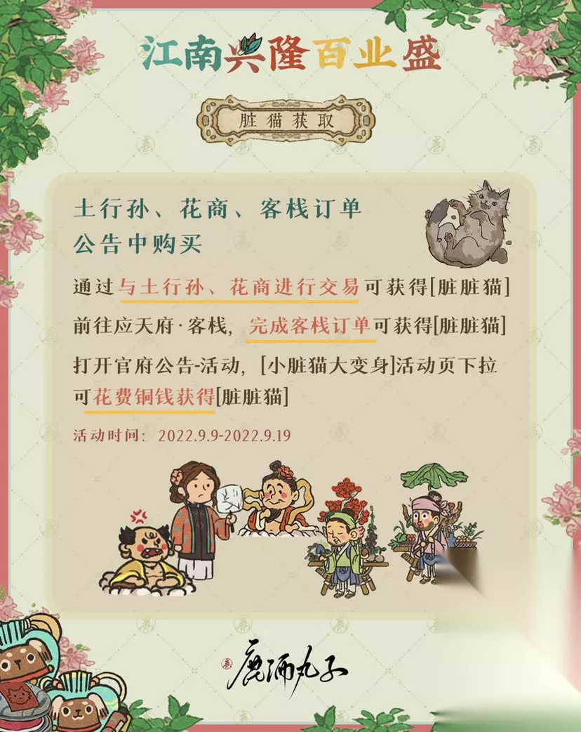 获取泥巴脏脏猫 ①跟土行孙、花商做买卖就能拿 ②接客栈订单也能得 ③花铜钱也能买