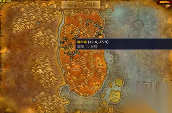 魔兽世界wlk猎人职业任务硬甲蝎位置一览 一、 硬甲蝎的位置 主要分布地区:杜隆塔尔(奥格瑞玛外) 试炼谷附近(新手村) 剃刀岭北边的山下(靠近山脉的区域) 杜隆塔尔中北部(51.8, 43.5附近)