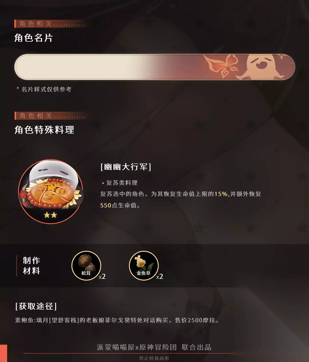▌P7 角色名片&角色料理