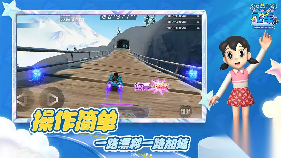 这是一款以蜡笔小新为主角的2d赛车闯关游戏,玩具需要驾驶证摩托车穿过种种障碍,从而抵达下一个关卡。虽然说画面偏向卡通,但驾驶时的体验还是非常优秀的,尤其是游戏的音效,真实的轰鸣声能为你带来非凡的代入感。并且,游戏本身的趣味性也很足,除了基础的驾驶摩托车之外,还有非常新奇的道具系统,可供玩家探索的内容非常多。 高速下载 普通下载 优先233乐园APP下载 因为蜡笔小新游戏数量有限的缘故,小编为大家准备了几款其他的童年动漫作品,质量也是很可观的。 2、《哆啦A梦飞车》