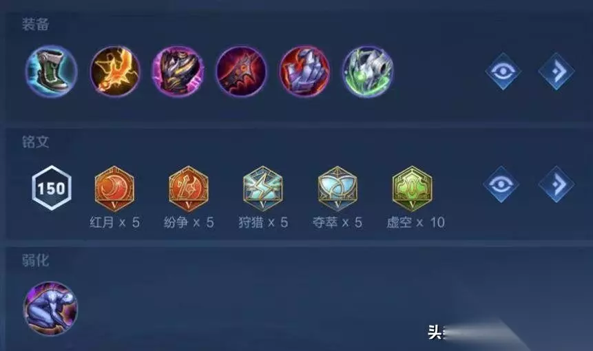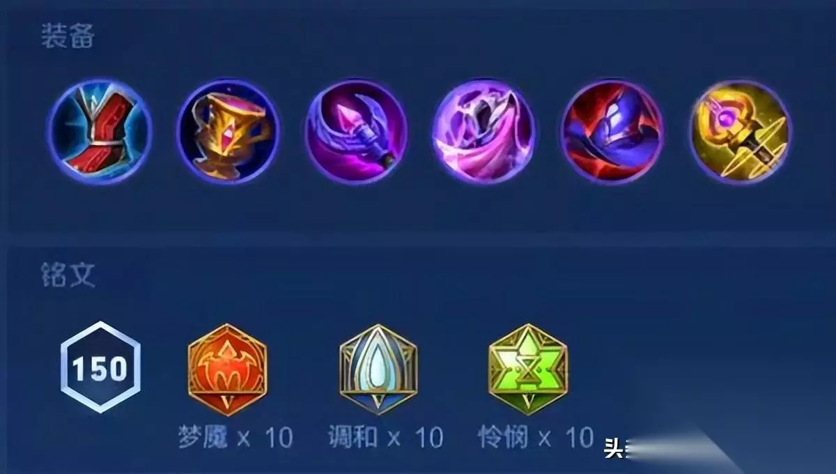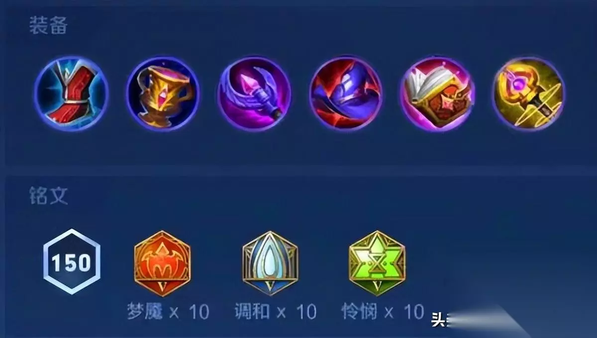 最后就是大佬新开发出来的出装,抵抗之靴、红莲斗篷、末世、血魔之怒、暴烈之甲、永夜守护,铭文是5狩猎5夺萃、10虚空、9纷争1红月,召唤师技能弱化、狂暴、闪现、斩杀都可以,这套搭配主打的就是抗伤加粘人,只要能黏住目标,有红莲斗篷的被动灼烧,末世和血魔之怒的被动法球,伤害并不低,很符合亚连持续输出型伤害的定位。 貂蝉