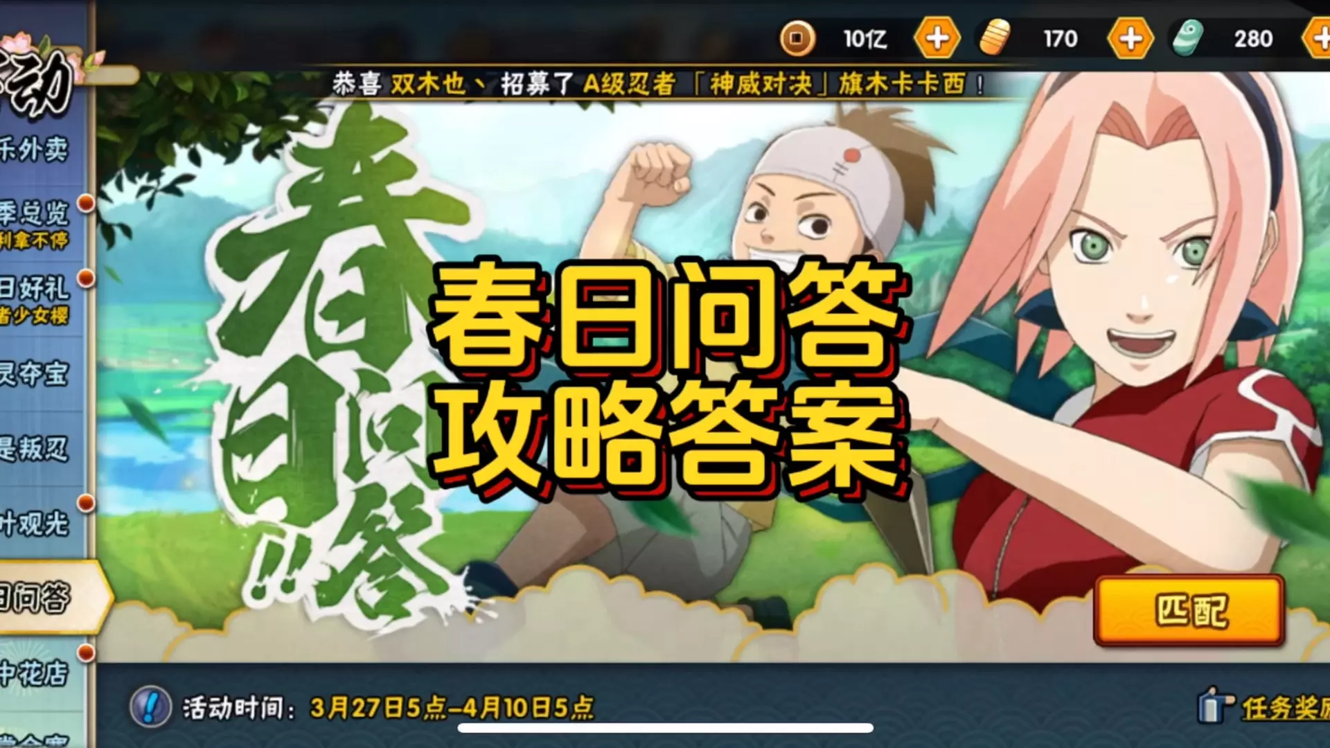 这是火影手游的本周活动攻略,涵盖春日好礼、通灵夺宝、木叶观光、春日问答等活动,介绍了木叶观光的参与技巧,通灵夺宝的通灵兽选择建议,还可通过春日好礼获取忍者、装扮等福利。