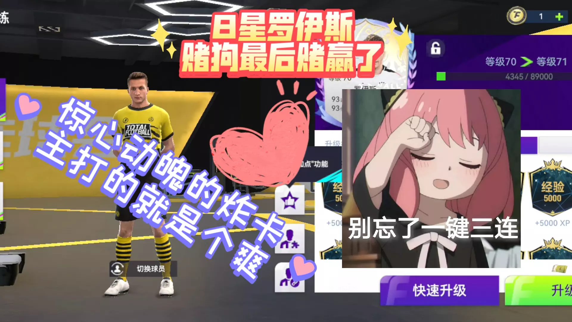 之前那个德国号的套 还是之前那张罗伊斯 成功突到八星了 也没有什么遗憾了 足球初恋在多特的最后一张卡 完美的状态和数值 加上Mbappe的绝妙进攻 前进前进前进