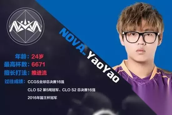 2017年的Yao Yao活跃于国内外各大赛事的舞台上,但取得的成绩显然不能令他自己满意。如今职业联赛即将拉开战幕,当NOVA战队向这位一直奋战在CR赛场上的斗士抛出橄榄枝,他立马给出了肯定的回应。