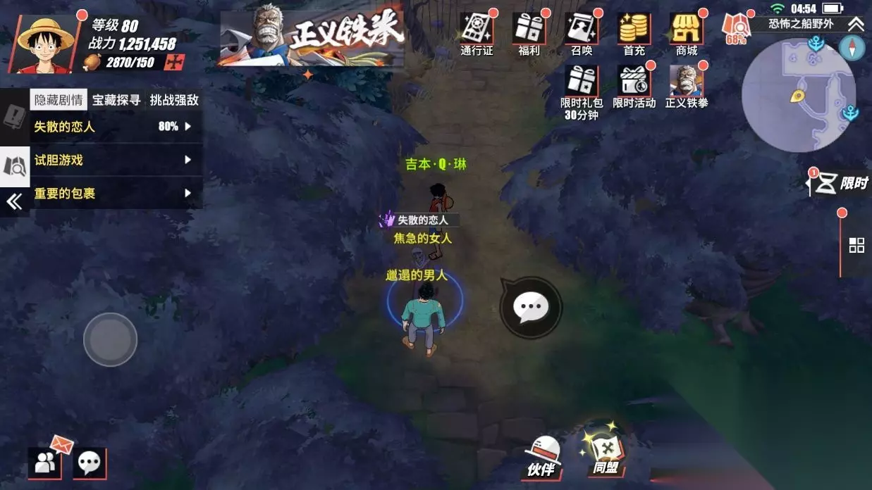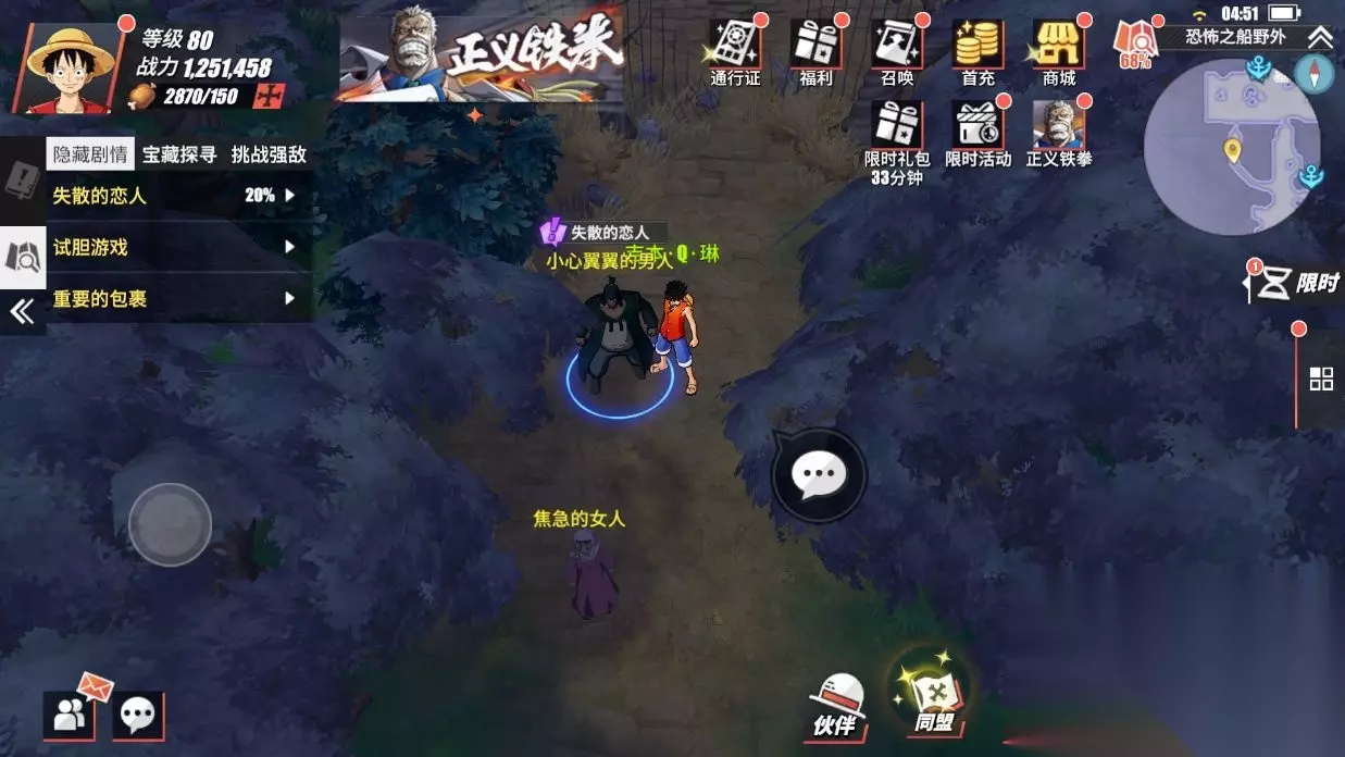 航海王热血航线恐怖奇谈失散的恋人探索已经开始了,小伙伴们开始做任务了吗?我们需要去恐怖之船野外做任务,今天给大家带来了详细的流程,小伙伴们直接跟着步骤操作就可以顺利通关了。 航海王热血航线恐怖奇谈失散的恋人探索攻略是什么 来到恐怖之船野外的森林,找到焦急的女人。