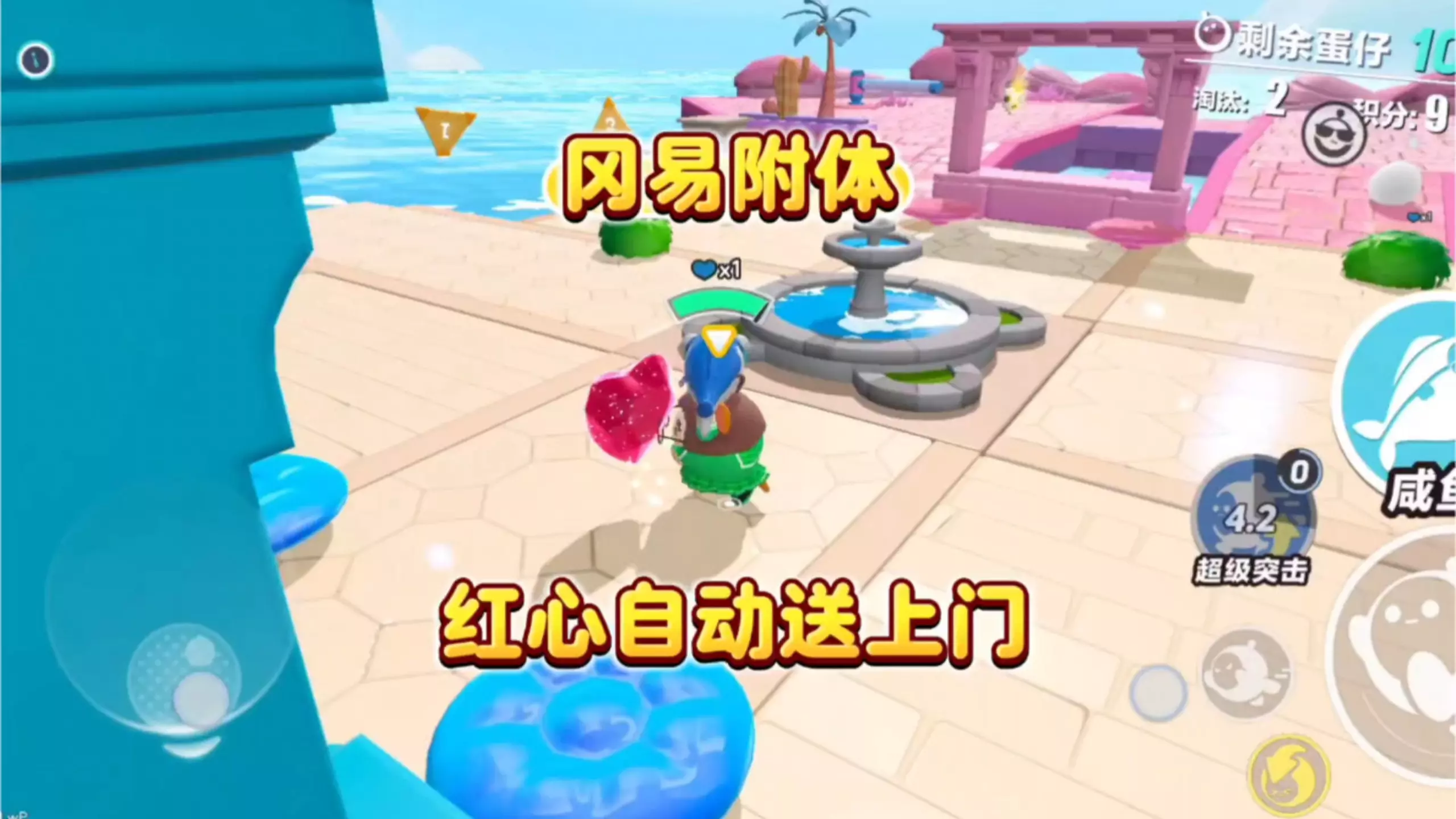 这是《蛋仔派对》的游戏解说内容,展示了玩家在疯狂乱斗模式里化身红心收割机,疯狂收集红心的精彩过程,还呈现了使用道具、在关卡中推进的游戏画面。