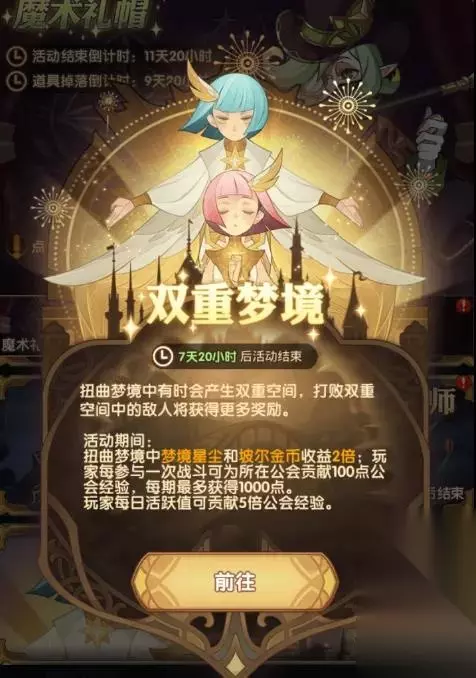 接下来小编就要给大家带来新双倍活动玩法指南,感兴趣的小伙伴们可千万不要错过了哦,一起来了解一下吧~ 剑与远征双重梦境活动攻略一览 是替换掉原来的双倍挂机活动。 每期梦境最多1000点。 视公会成员梦境积极程度加快公会升级速度(需要花费50钻刷新一次打满)。 5倍到10倍。