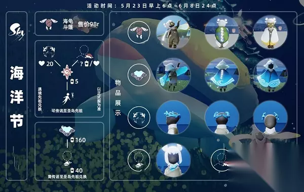 光遇海洋节能兑换那些?游戏中全新上线了海洋节活动,小伙伴们一定对这次活动的兑换图十分好奇吧,那么今天小编就给大家带来一期光遇海洋节兑换图一览。 光遇2022海洋节兑换图分享