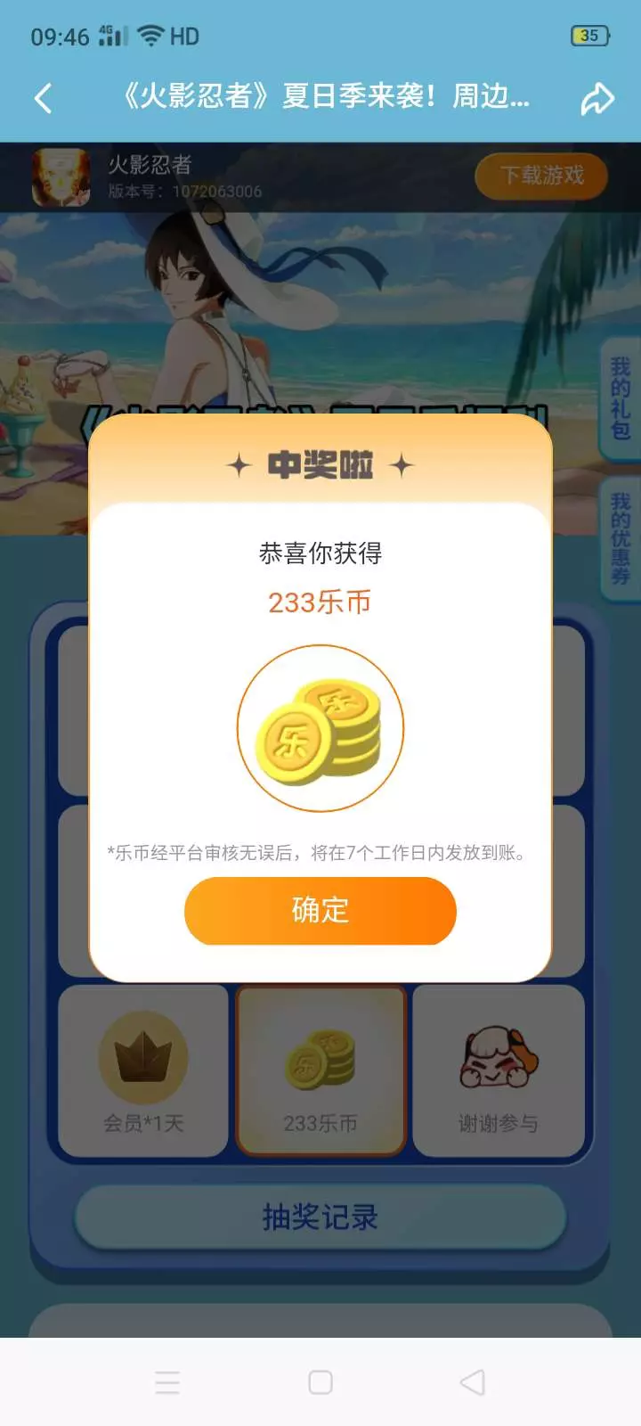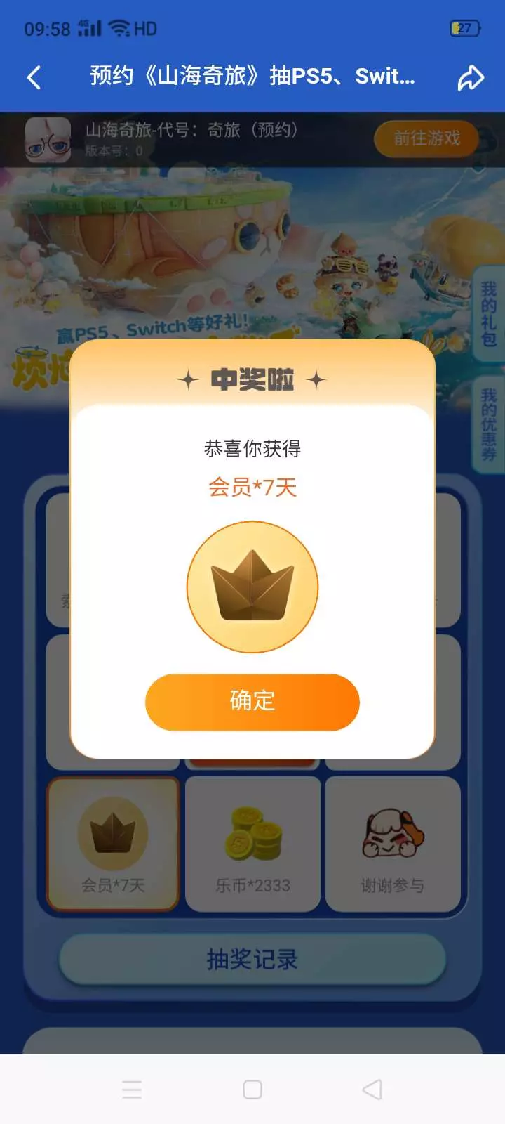 中奖啦!!