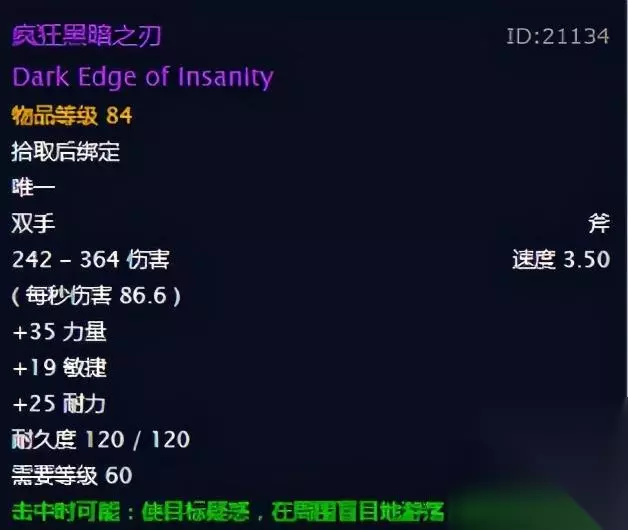 眼球斧:说到安其拉强力的双手武器,那就不得不提眼球斧了,在安其拉神殿中这个可以说是非常实用而又强力的神器,我们来看看它的一个属性。
