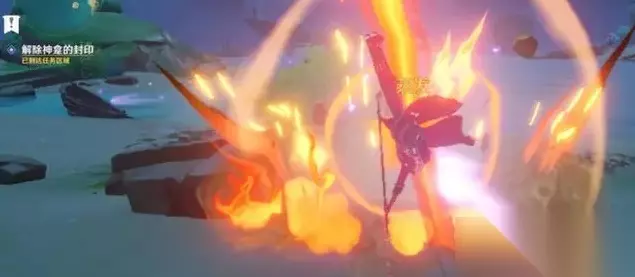 2、第一个封印在破船上面,旁边还有石头怪。玩家可以使用风系或者冰系角色击碎石头怪,即可解除封印。