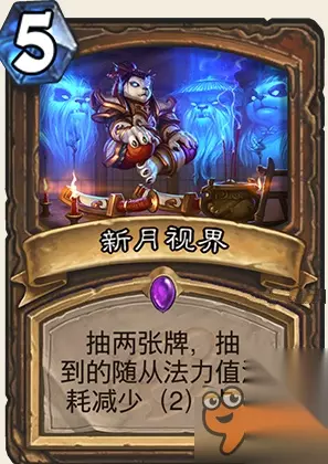 属性: 每控制一个友方随从,便获得一个空的法力水晶。 评价: 感觉即将要出新的套路,变速德? 这张牌的潜力非常可怕,不管是配合根须4费控场成长2个水晶还是前期铺了三费直接成长都是非常强力的,唯一遗憾的就是JJC了,这张牌在jjc有点坑爹。 JJC碰到这张牌一般不考虑,小德的紫卡有不少地雷,包括这个。 构筑中非常强的一张牌,变速德核心之一。 炉石传说龙争虎斗加基森新卡新月视界怎么样? 图鉴: