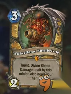属性: 亡语,如果该随从攻击力大于等于2抽一张牌。 评价: 这张牌怎么说呢,比较坑爹的一张牌,还是张紫卡,JJC碰到基本就是地雷级别的。 112的身材只能说是标准,碰到各种232或者是223都会被吊打,亡语也是那种如果不BUFF就是白卡的感觉。 JJC基本不考虑,除非你BUFF特别多。 构筑倒是看情况放进去,比起121亡语给友军圣盾这张牌是在是弱爆了。 炉石传说龙争虎斗加基森圣骑士橙卡燃鬓自走炮用法详解: 图鉴: