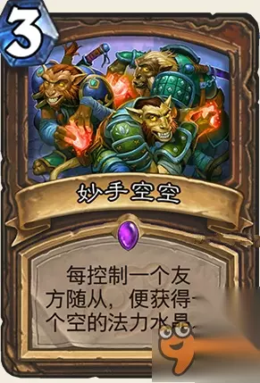 属性: 本回合中,获得一个法力水晶。 评价: 这张牌和后手给的硬币属性是一样的,对贼来说非常强大。 不过相应的弊端也出来了,加了这张牌的贼可能出现亏手牌太严重的情况,相应的构筑起来要加入更多的过牌了。JJC这张牌最好是0-1张,抓位很一般,毕竟中后期过牌抓到这张非常坑爹。 JJC推荐1张或者不抓,过牌多的话倒是可以无视这个。这张牌太亏手牌了,和后手的硬币不一样,而且贼后手的一个硬币很多时候就够用了,两枚有点多。 构筑的话这张牌用法就很多了,相信很多黑科技卡组都能用到。 另外吐槽一下,被激活完爆。 如转载涉及版权等问题,请作者与我司联系,我司将在第一时间删除或支付稿酬。