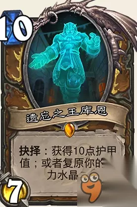 属性: 抽两张牌,抽到随从牌的话该随从牌法力消耗减少2. 评价: 比较中庸的补牌,抽到两张随从是赚的,一张小亏,2张法术亏成马,可以这么理解。 构筑中还是不错的,不过在JJC中就相当坑爹了,紫卡地雷。 JJC中碰到了是在没办法的选择之一,5费过两张牌太亏节奏了,即使有随从消耗-2也不易当当回合就能用。亏了5费节奏之后打起来会很难受。 构筑中勉强可以一用,感觉没有太多情况会用到这张牌,鸡肋。。 龙争虎斗加基森德鲁伊橙卡遗忘之王图文介绍: 图鉴: