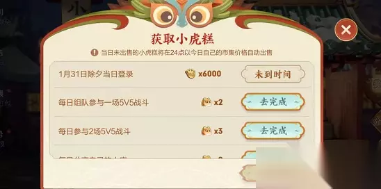2、根据每天不同的汇率进行售卖,从而获得小虎币。(当日未出售额的小虎糕会在24点自动结算) 拓展内容 小虎糕:玩家可以通过获得的小虎糕兑换成小虎币。 小虎币:小虎币可以用与宝箱刷新,不同等级的宝盒所需要的小虎币不同,等级越高消耗就越多。 王者荣耀攻略大全 王者荣耀 王者云游戏 王者体验服 英雄专精汇总 【小编推荐】专区入口 || 视频站入口 || 体验服申请入口 || 全民竞猜赢好礼 【新英雄爆料】| 司马懿 || 瑶 || 孙策 || 新英雄:囚徒/书圣/瞬 | 【新皮肤爆料】| 李白团战皮肤:敏锐之力new || 诸葛亮团战皮肤:掌控 || 典韦穷奇皮肤 Hot!! | 王者荣耀最新攻略 赛季段位继承表 每日一题 边境突围玩法攻略 体验服爆料
