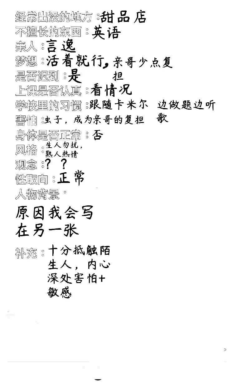 人设资料。