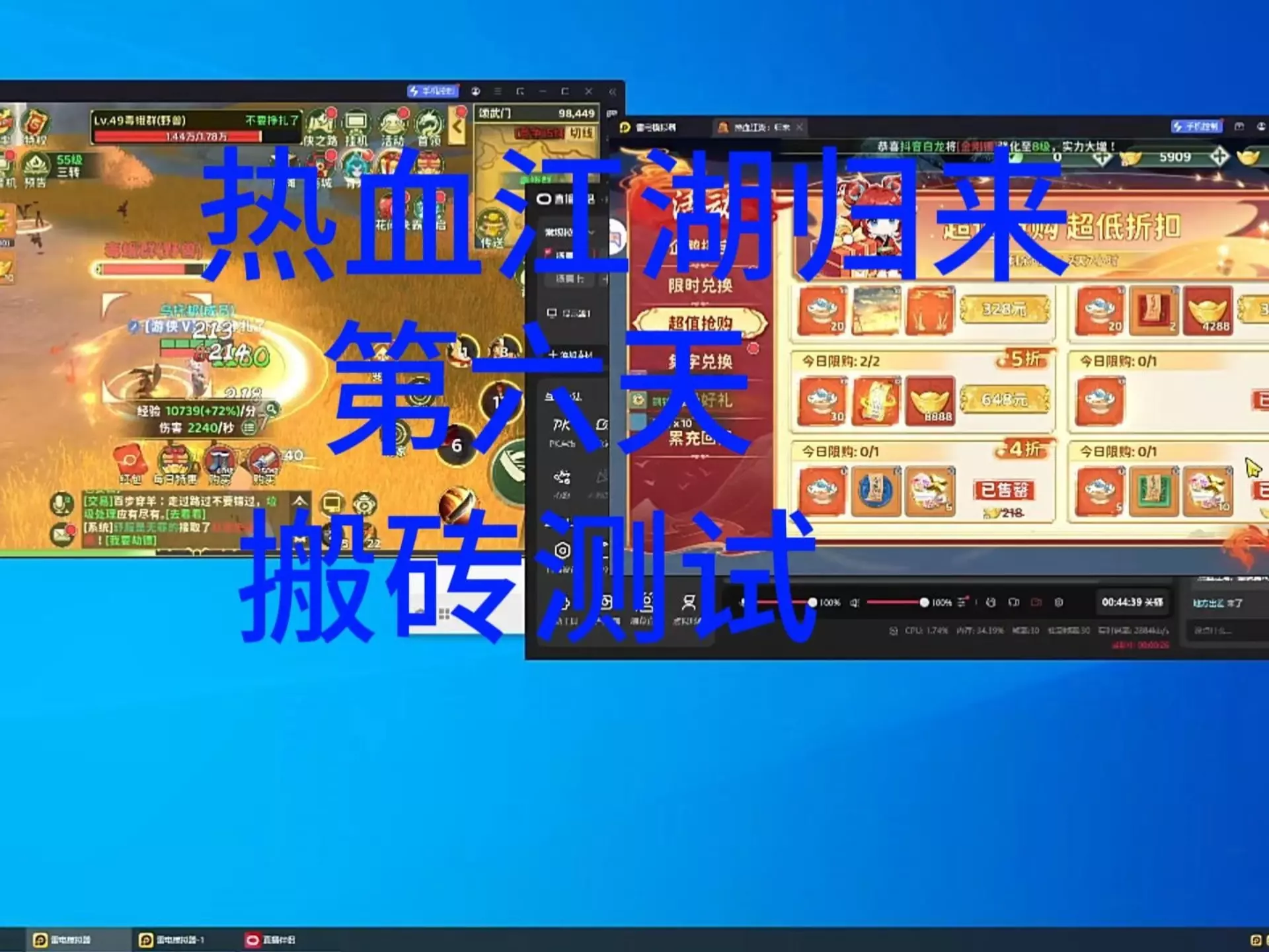 这是《热血江湖归来》的游戏实况内容,分享了搬砖实测第一天的真实情况,展示了游戏内装备售卖、月卡年卡福利等搬砖相关内容,还会带来该游戏的模拟器多开教程。