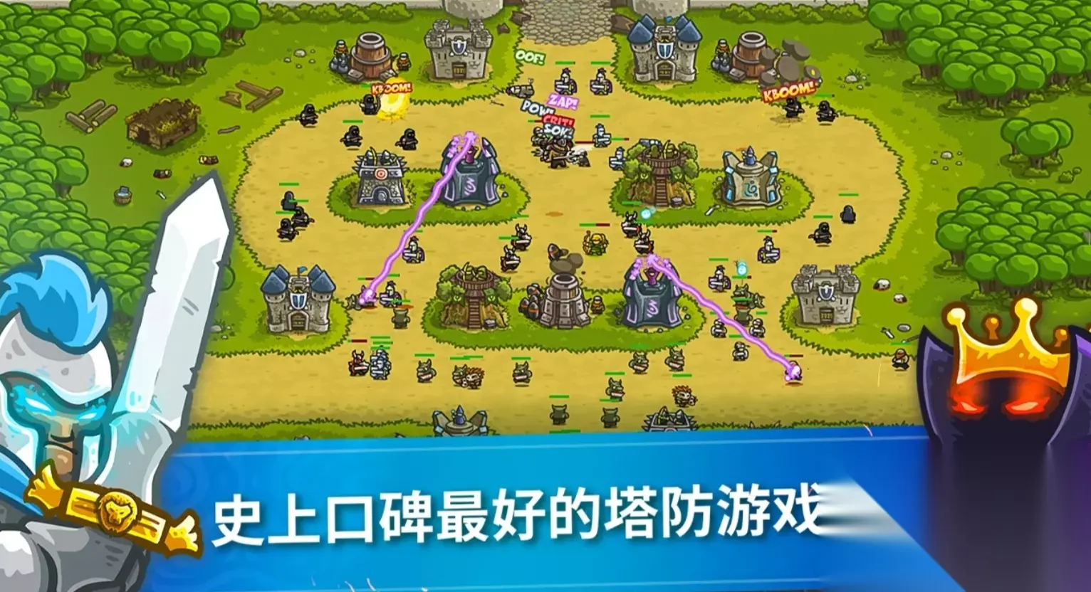 侧重于割草特性的趣味塔防,它在每个关卡轮次都会有数以百计的敌人从四面八方来围剿玩家,唯有将它们全部都消灭,才能将自己的防线进度推进到下一回合。每个轮次的敌人在实力上都会获得增强,玩家也能挑选随机刷出来的技能卡牌或加成效果,来令角色能获得更为独到的灭敌手段,这些技能还可搭配合并,融合出比原技能更为强大的效果,让各位能获得体验感更为激爽的清怪手段。 高速下载 普通下载 优先233乐园APP下载 7、《王国保卫战》