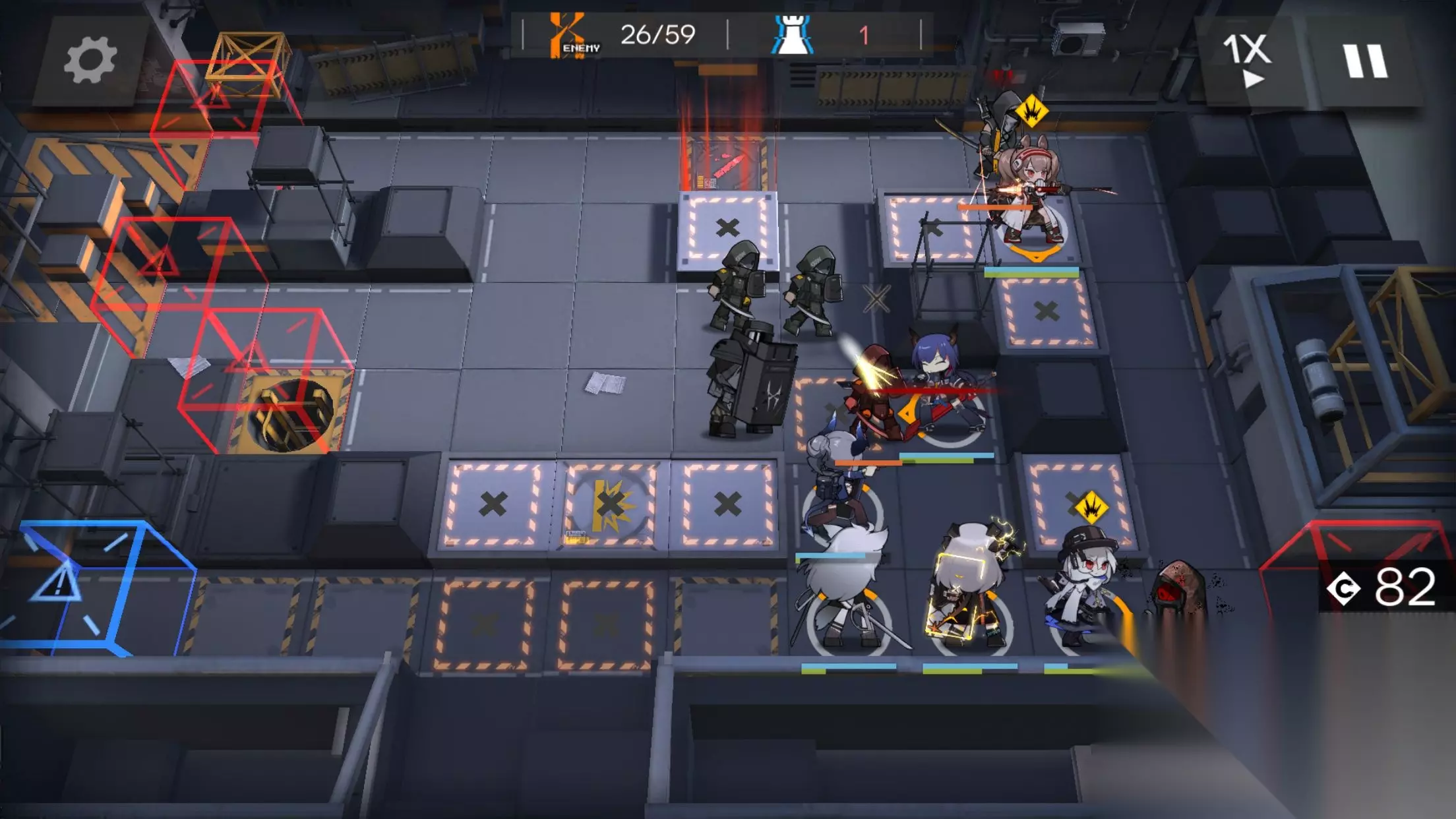总之就是先下推王然后下杰哥 杰哥开技能处理小红刀哥两个 然后不放技能等大红刀哥出来 阵容布置完毕尽快撤退推王 幽灵鲨不开技能可以同时处理一个法师哥和一个小红刀哥 最后一个大红刀哥会带着一个法师从上面出来 等红刀哥走出一格在他身后下推王切掉法师 然后杰哥开技能痛打红刀哥 然后幽灵鲨开技能击杀之 以上就是明日方舟59区废墟攻略了,希望对各位玩家有帮助。 关于游戏 《明日方舟》(《明日方舟Arknights》)是一款策略手游。你将作为罗德岛的一员,与罗德岛公开领导人阿米娅一同,雇佣人员频繁进入天灾影响后的高危地区,救助受难人群,处理矿石争端,以及对抗未知阻碍—— “罗德岛”的战术头脑,需要您的对策,请指引我们的航向。 喜欢这款游戏的玩家可以下载明日方舟的讯使桌宠体验哦,这么可爱的太阳花讯使不来一个吗!