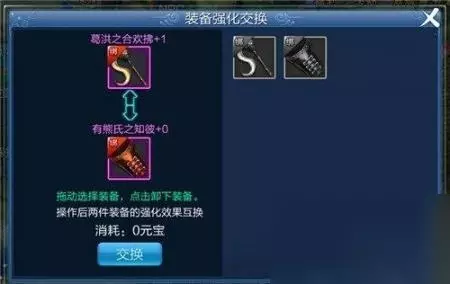 2、装备强化转移,就是把上面装备的强化等级转移给下面的装备,没有部位限制,+5之前都是免费了,+6之后要收取的元宝。