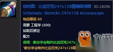 魔兽世界怀旧服比兹尼克247x128精确瞄准镜图纸在哪儿掉落?WOW怀旧服最好的远程武器瞄准镜获取办法。比兹尼克247x128精确瞄准镜大家应该都在世界上有人在叫卖的,那么很多猎人都自己学了工程学,想要自己做又不知道在哪儿获得这些图纸,下面86就来教大家在哪里得到最好的远程瞄准镜,具体操作如下: 比兹尼克247x128精确瞄准镜属性