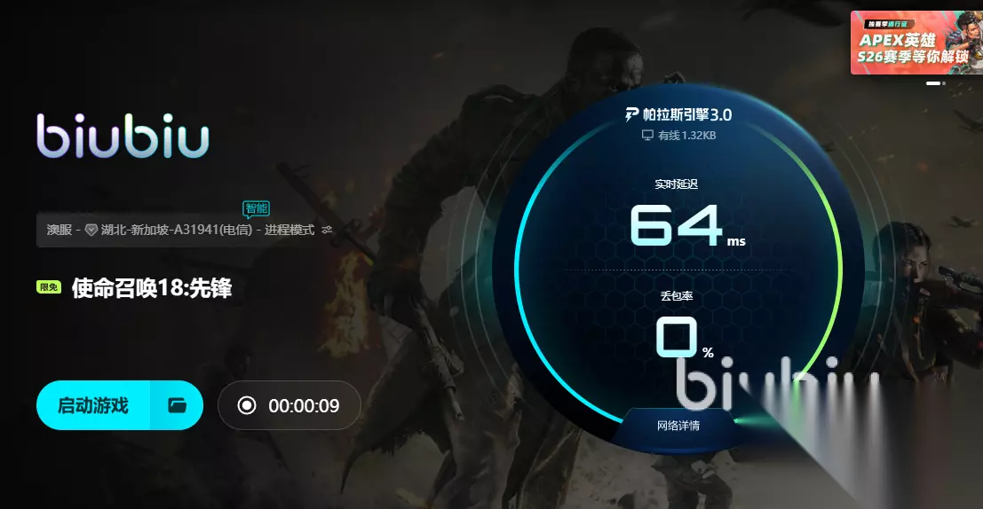 同理,在改善本地网络上,通过引入升级后的帕拉斯引擎3.0技术,利用各种无法达到的高科技技术检测网络变化情况,在必要时及时启动实时补发数据包技术,将玩家打游戏时所产生的数据通通发到服务器里。 经过在服务端和客户端两侧的加速处理,玩家可以从登录到打游戏的全过程享绝顶极致的游戏体验,这些都得到了Aixleft冠军明星真正的实战验证,并且效果比升级前更优。现在,玩家们还有多个机会体验到升级后的biubiu加速效果,如未注册过的玩家,现在注册后就有24小时福利,登录就能使用,另外新老玩家还能使用【biubiu不卡顿】在客户端兑换3天免费的福利,这些活动新玩家都可以参加,时间是可以直接累加到,有96个小时哦!