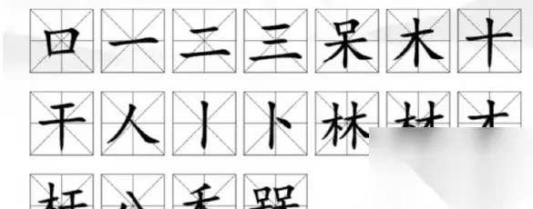 汉字找茬王槑找出18个常见字过关攻略分享 1、槑找出18个字:一、二、三、十、干、禾、木、才、材、林、杆、秝(lì)、口、呆、槑(méi)、丨(gun)、人、从、八。 2、槑这个汉字读作méi,由两个呆字组成,呆字由口和木组成,木字包含十和人,两个人字合起来是从字,十加一横是干字,再加两撇是禾字,去掉一撇是才字,两个木字合起来是林字;木字加上干字是干字,禾字加上禾字是秝(lì)字。