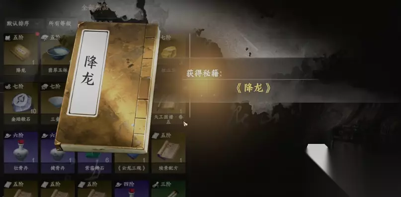 武学本体:玩家可以来到坐标1068~1515。在轩辕14的面前就可以看到有一个小破碗在抢走之后,霍白白就会释放攻击。玩家在拿到轩辕网之后,只需要点开背包选择。行动就会触发一段文字,马上就能拿到降龙心诀。使用这一个心诀还需要保证悟性超过于100,在使用完毕之后,背包内就会有降龙功法。