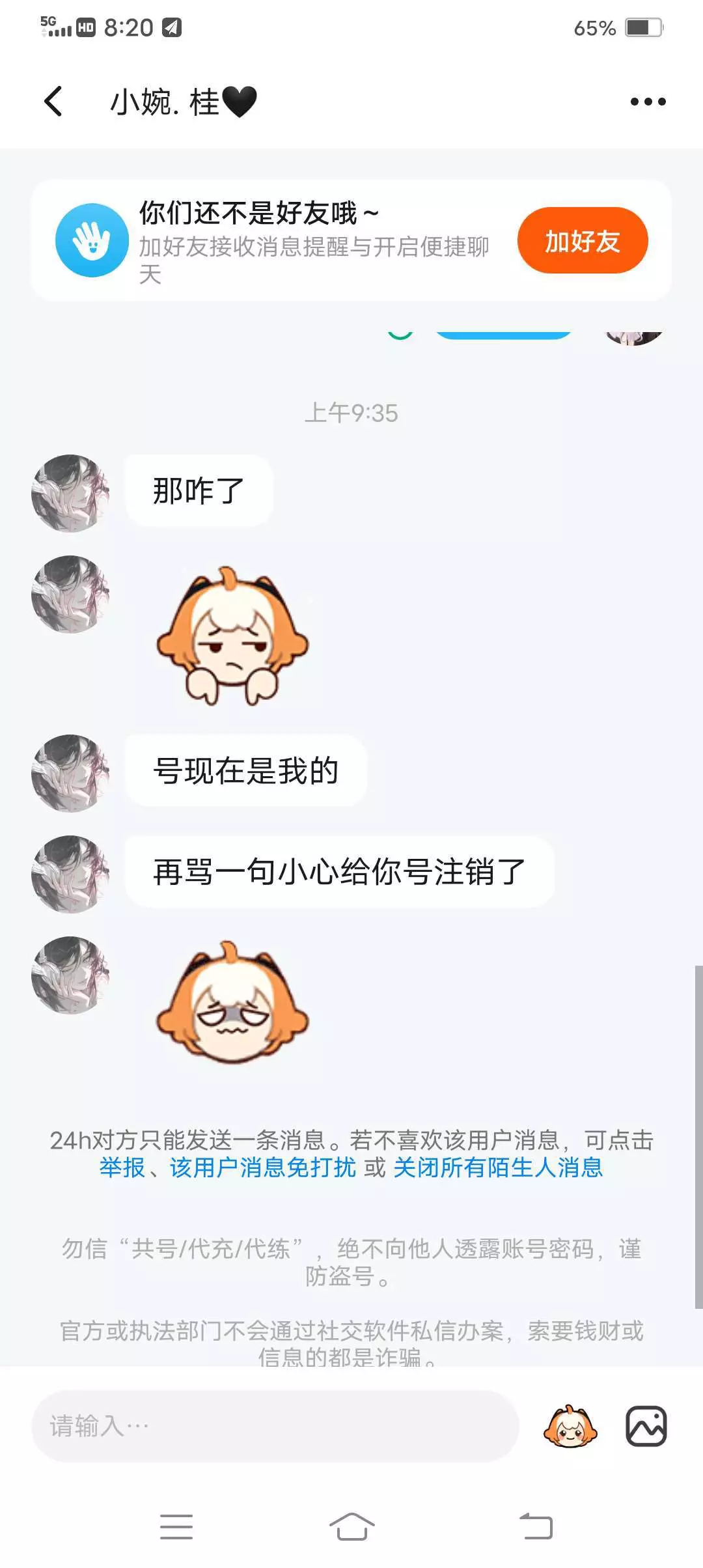 盗号还骂人,而且还登本人的第五人格号玩,本人第五人格名字叫:可乐骗