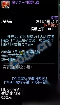 活动时间: 2018年6月19日——2018年7月19日 活动内容: 直接在周年庆拿金币在赛丽亚这里购买奖励物品即可。