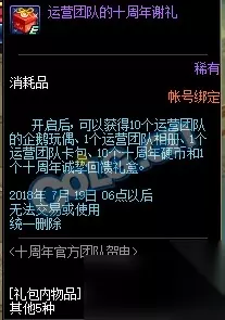 运营团队的谢礼开启后可获得10个运营团队的企鹅玩偶、1个运营团队相册、1个运营团队卡包、10个十周年硬币和1个十周年诚挚回馈礼盒。