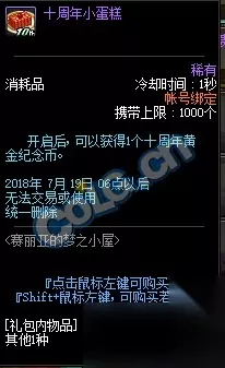 小蛋糕开启可以获得一个十周年黄金纪念币。