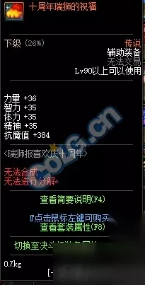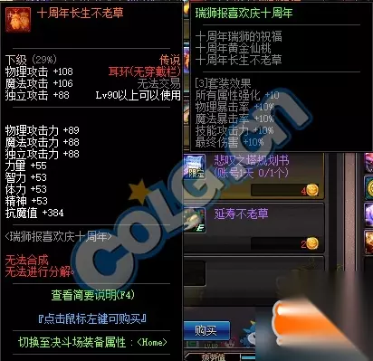 套装属性: 所有属性强化+10 物理暴击率+10% 魔法暴击率+10% 技能攻击力+10% 最终伤害+10% 十周年庆典拼图
