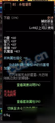 时:永恒凝滞 加了110四维、所有属强16、黄追14%