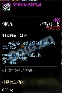 礼盒里有1个升级券大礼盒、1个圣物灵跃武器礼盒和1个天马守护神圣物防具套装礼盒。