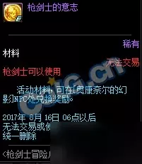 然后升级完成活动任务可以获得活动材料枪剑士的意志。