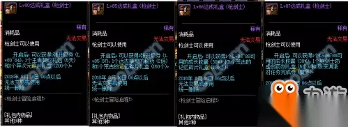 达到90级可以获得枪剑术达人礼盒:里面可以自选自制的枪剑士90史诗武器1个回忆怀表和1个耳环完成券。 十周年累积在线得好礼