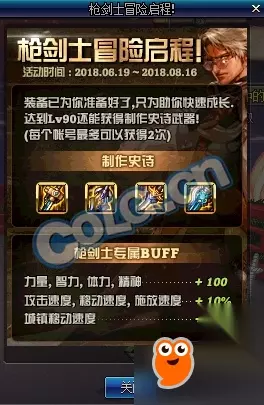 枪剑士专属BUFF 力量、智力、体力、精神+100 攻速、移速、施放速度+10% 城镇移动速度+20% 升级奖励