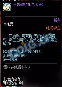 在线30分钟可获得王者契约礼包1天