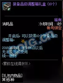累积在线5天可获得10个装备品级调整箱。