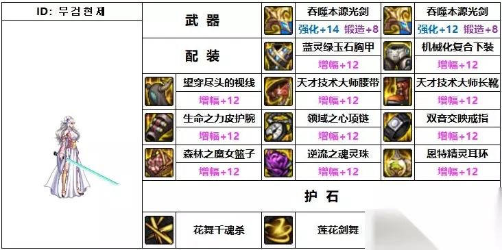总结: 因为最新的的装备平衡调整,制式武器均得到了10%的增强,使得剑帝制式武器和cp武器之间的微妙平衡被打破,剑帝玩家也几乎全面倒向制式武器。 韩服第一流浪武士在装备选择上以MP流三件套(护肩、鞋子和腰带)为主,同时搭配感电手镯,增强破韧能力。其他的部位将上衣、辅助装备和耳环三个部位替换为自定义史诗,并且将下装替换为“机械战神实验室”史诗【机械化复合下装】。 2、韩服第二流浪武士 武器:吞噬本源光剑 上衣:蓝灵绿玉石胸甲 护肩:望穿尽头的视线 下装:机械化复合下装 腰带:天才技术大师腰带 鞋子:天才技术大师长靴 手镯:流星飞电手镯 戒指:双音交映戒指 项链:领域之心项链 辅助装备:混合视觉眼镜 魔法石:逆流之魂灵珠 耳环:隐匿之叹息耳环