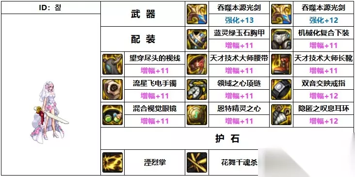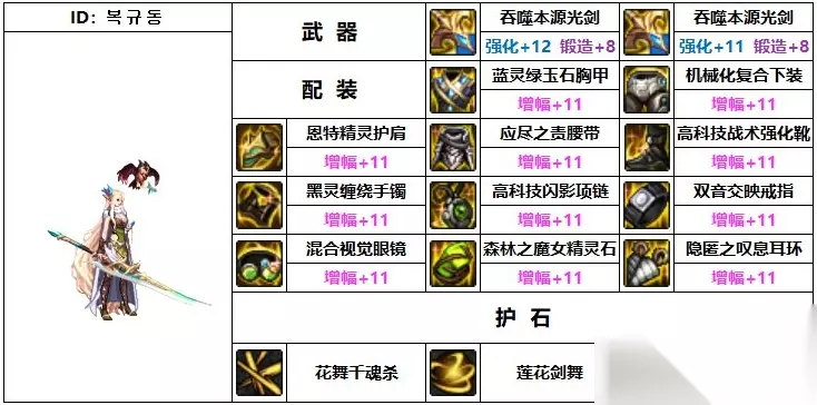 地下城与勇士流浪武士110级毕业装备推荐 1、韩服第一流浪武士 武器:吞噬本源光剑 上衣:蓝灵绿玉石胸甲 护肩:望穿尽头的视线 下装:机械化复合下装 腰带:天才技术大师腰带 鞋子:天才技术大师长靴 手镯:生命之力皮护腕 戒指:双音交映戒指 项链:领域之心项链 辅助装备:森林之魔女篮子 魔法石:逆流之魂灵珠 耳环:恩特精灵耳环