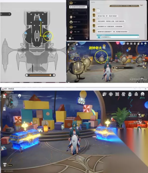 *全部收集七个“黄金限定·艾迪恩游戏币”后即可获得成就【星星的金币】。 第1个【黄金限定·艾迪恩游戏币】 (1)首先需要完成截止目前2.3版本【匹诺康尼】全部的【梦境迷钟】解密; (2)完成全部的【梦境迷钟】解密后,背包会有21个【怪梦积木】,然后就会接到短信任务【梦与钟表维修艺术·二】,接着来到【晖长石号】下图位置完成【迷钟老大】的修复解密后,会获得一个贵重战利品宝箱,开箱后即可获得第1个【黄金限定·艾迪恩游戏币】,就是下面第2图片左边的宝箱,右边的宝箱是提交21个【怪梦积木】后获得的。