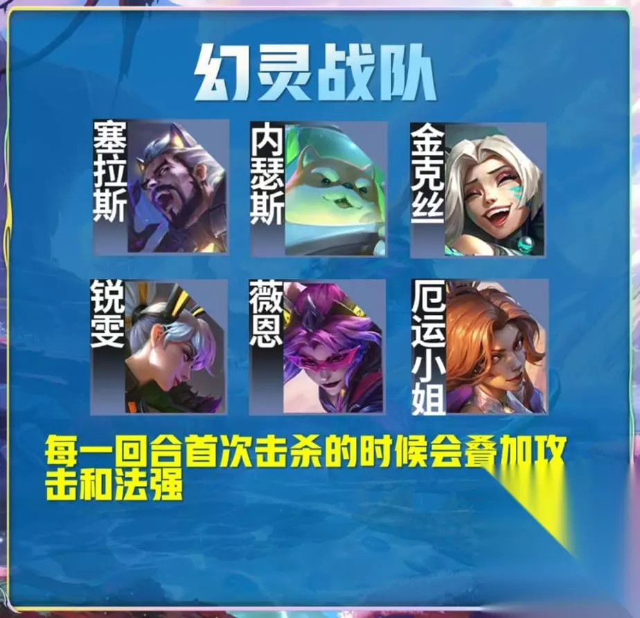 云顶之弈是英雄联盟这款游戏中的一个自走棋模式,它能够让你体验到下棋的乐趣,你需要在这里根据这些棋子的事情来搭配一个合适的阵容,才可以将每一个棋子的属性发挥出来,最近游戏中将迎来全新的S8赛季,那么在S8赛季中有哪些全新的羁绊呢?下面小编就为大家带来了《云顶之弈》s8羁绊全览图,感兴趣的小伙伴们一起来看看吧,希望能对大家有所帮助。 《云顶之弈》s8羁绊全览图 【幻灵战队】每次首次击杀都会获得攻击力和法术强度