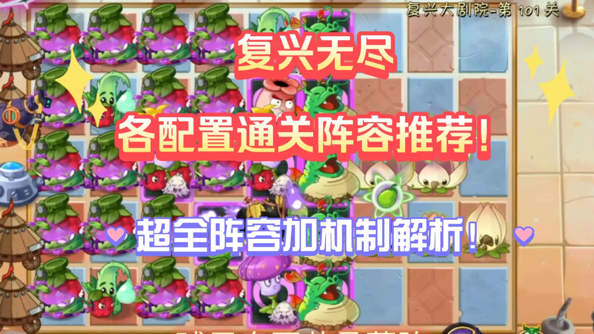 本期视频详细讲解了各种配置的通关阵容,汇集了各路大佬的素材和思路,非常感谢! 附带:定向进化皇冠花的方法:向日葵区间25~49,大退游戏,进入进化神器界面,什么…