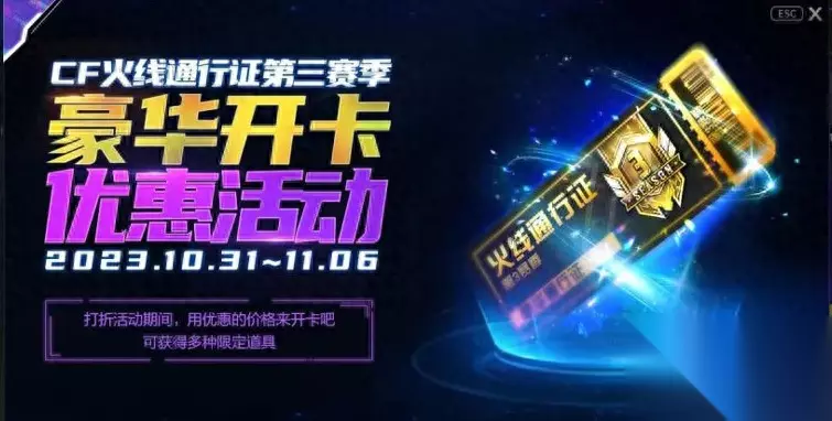 通行证打折的具体时间可能因赛季而异。以第三赛季为例,通行证打折时间为2023年10月31日-2023年11月6日