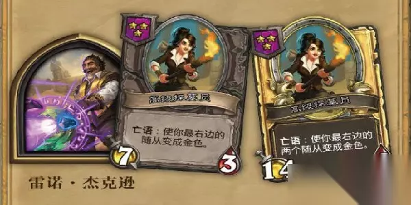 炉石传说雷诺·杰克逊?这个卡牌是需要完成探险者协会冒险模式当中的“奥西斯神庙”区域后即可获得该卡牌的普通版本,她的伙伴则是高级探墓员,她是可以让最右边的随从变成金色,下面就一起来看看吧!
