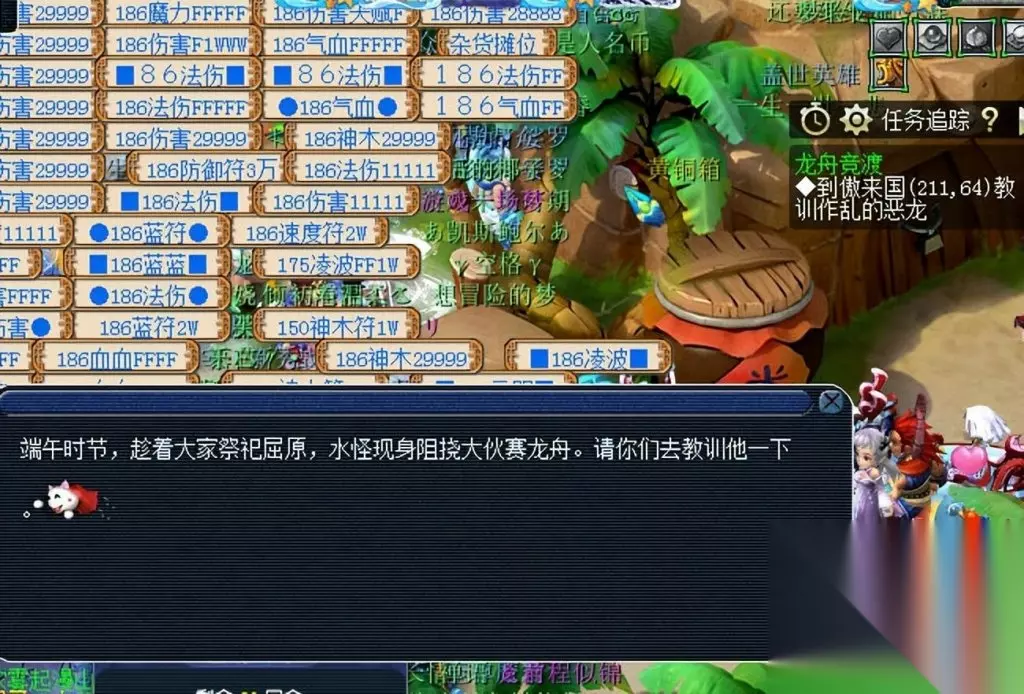 只有5个怪物,难度低。 类型13:包粽子。 第1个选择,一定要看清第1个字的偏旁部首。毕竟棕和粽,非常相似。第2个选择,应该不会有人选错吧?而第3个选择,则是随意。 每天首次完成龙舟竞速,必定获得梦幻精品粽!至于梦幻精品粽的用途,相信大家都非常熟悉,这里就不给大家介绍了。 总结:整个任务,都由小游戏和战斗组成。而且,战斗难度都是偏低。绝对是不容错过的存在!那么问题来了,小伙伴们你们是喜欢吃甜粽子?还是咸粽子?